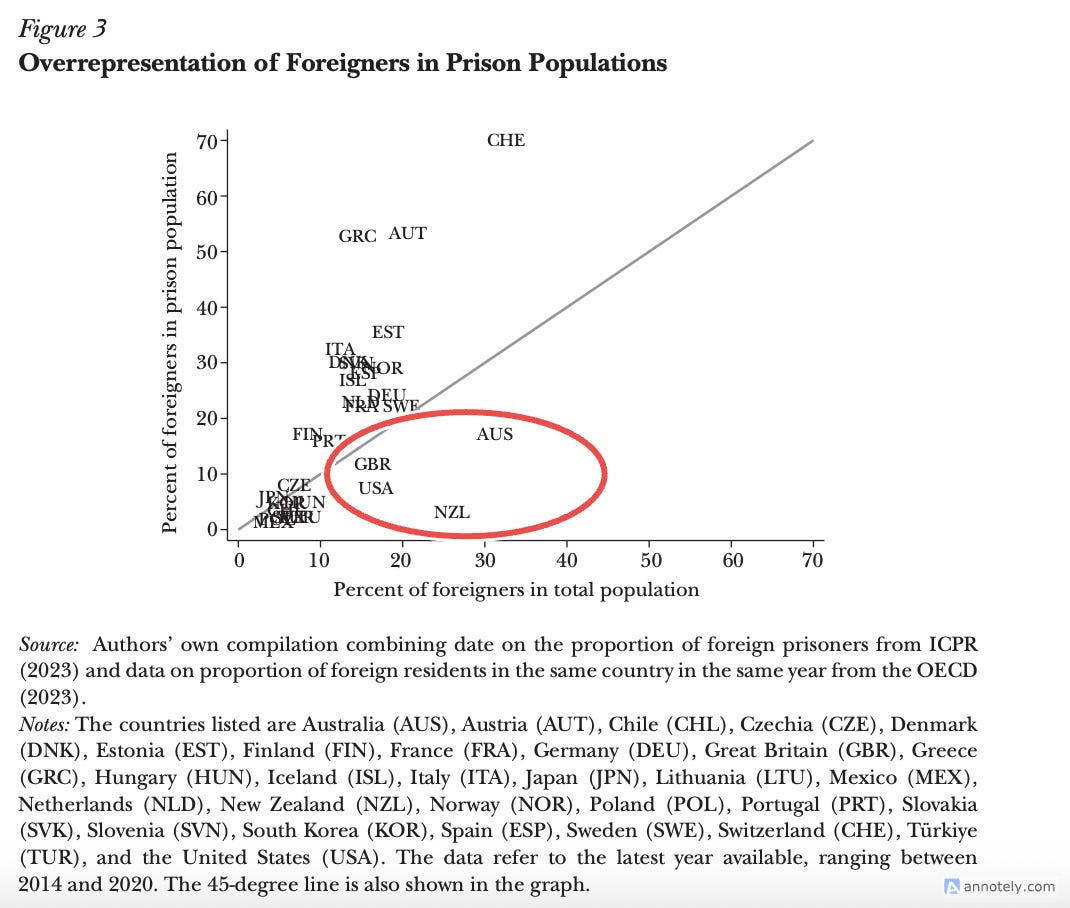 Immigrants in the Anglosphere are particularly underrepresented in prisons.